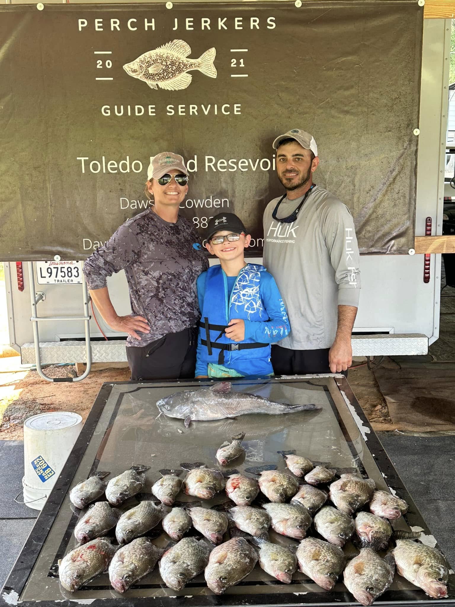 The past couple weeks has been a grind but we have been able to put together a nice mess of fish each day. We are catching majority of our fish in 18-23’ of water on shiners. While also catching a few on the Natural Forage T-shad in the color “magic shad”. The bass bite has also been phenomenal. Catching anywhere from 20-40 fish a day has seemed to become a common occurrence. We are targeting main lake points and drops with an 8xd and a big Carolina Rig to catch the bigger fish but that C-rig will put the numbers in the boat too. We have some dates open in July for crappie and bass so get in while they are available! (318)518-8836